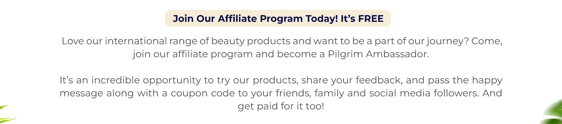 Promote your Pilgrim affiliate code/links on