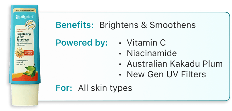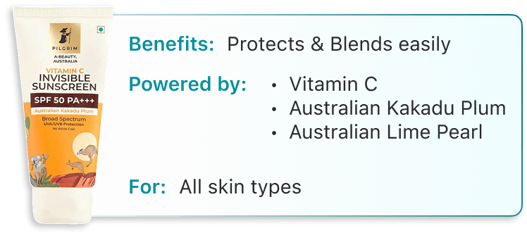 The benefits of using Vitamin C Sunscreen include: Reduces dullness and dark spots caused by sun exposure Provides broad-spectrum protection against UVA, UVB, and blue light rays Quick-absorbing formula for a natural finish with zero white cast
